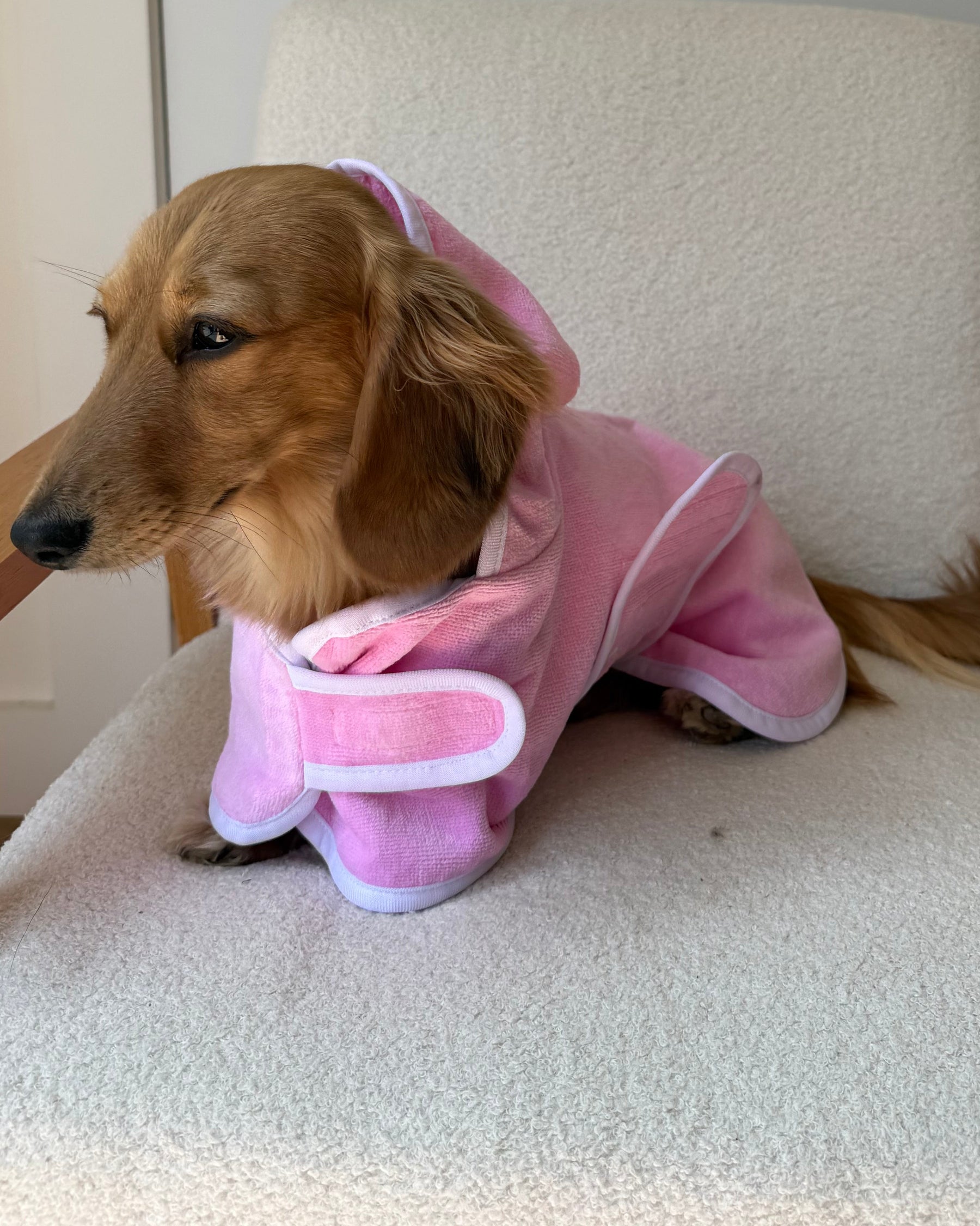 Treat your furry friend to the ultimate in comfort and style with our 100% cotton dog bathrobe. Crafted with soft terry towelling on the inside to gently absorb moisture after baths or swims, and a smooth velour outer layer for a touch of luxury, this robe is as practical as it is adorable. Its oversized fit ensures maximum comfort and freedom of movement for pups of all shapes and sizes.